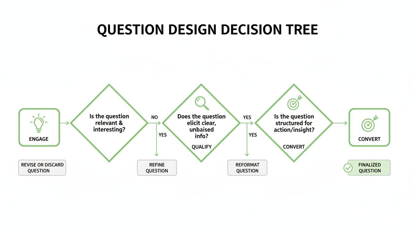 The order of your questions is just as important as the questions themselves. A janky, poorly structured flow will cause people to bail, no matter how brilliant your questions are. The key is to build momentum and trust as the user clicks through.