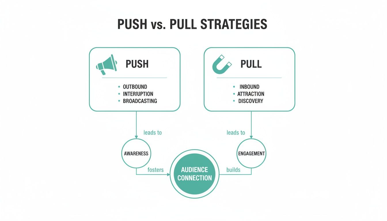 On the flip side, use your pull content to nurture the leads you grabbed from a push campaign. Did you collect a bunch of business cards at a trade show? Don't just hit them with a sales pitch. Send them your most valuable content to build trust first. This hybrid approach is how you turn fleeting attention into a solid, long-lasting brand.