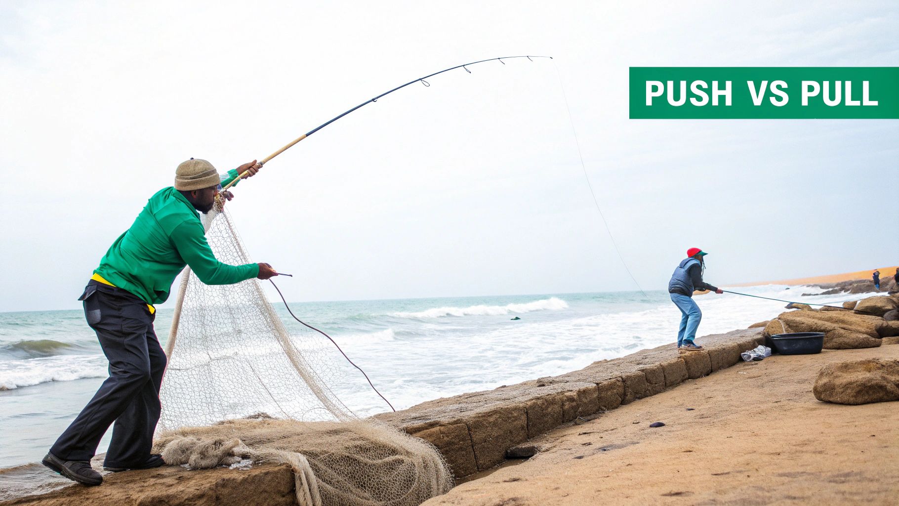 This simple contrast gets to the heart of the push-pull dynamic. It's not about which method is better; it’s about knowing when to broadcast and when to attract.