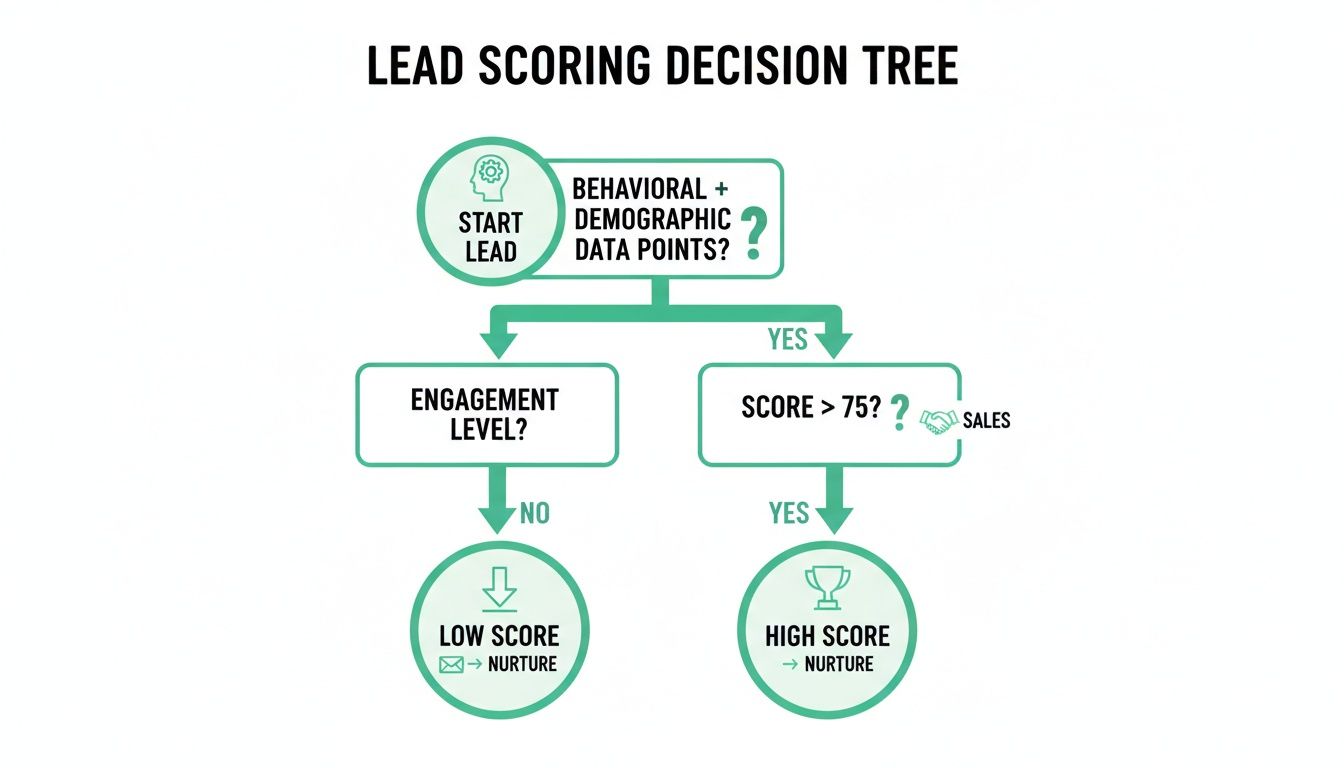 This infographic lays out a simple decision tree for routing leads based on their score. It’s a great visual for the basic logic driving this whole process.